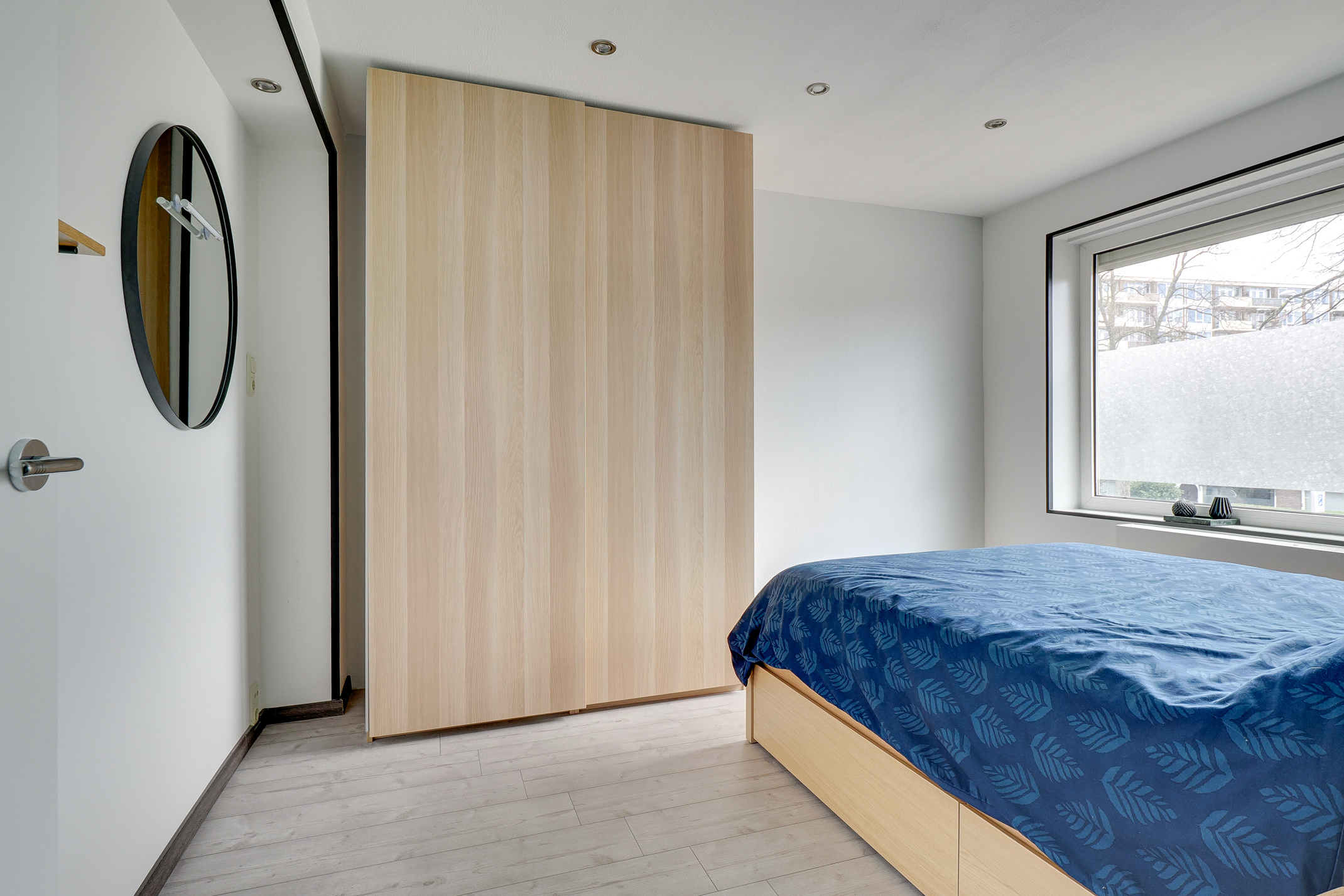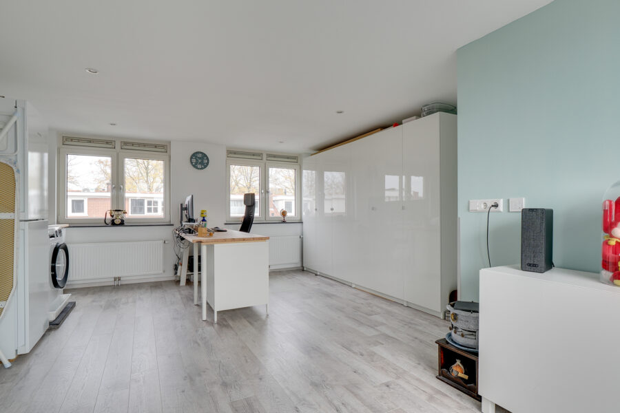 Aan de voorzijde bevindt zich een tweede volwaardige slaapkamer met een grote raampartij. De derde kamer, momenteel ingericht als hobby- en klusruimte, is ideaal als werkplek, kinderkamer of extra berging. Deze ruimte beschikt eveneens over een raam en natuurlijke lichtinval.
