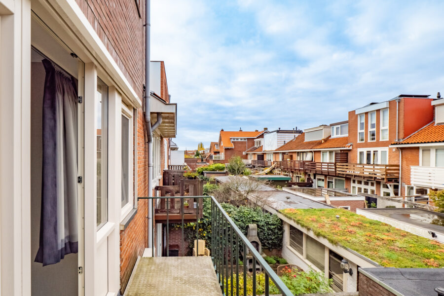 De eerste verdieping telt drie slaapkamers en een fraai afgewerkte badkamer. De hoofdslaapkamer bevindt zich aan de achterzijde, is voorzien van een praktische inbouwkast. En is heerlijk licht dankzij het grote raam en openslaande deur naar het balkon.